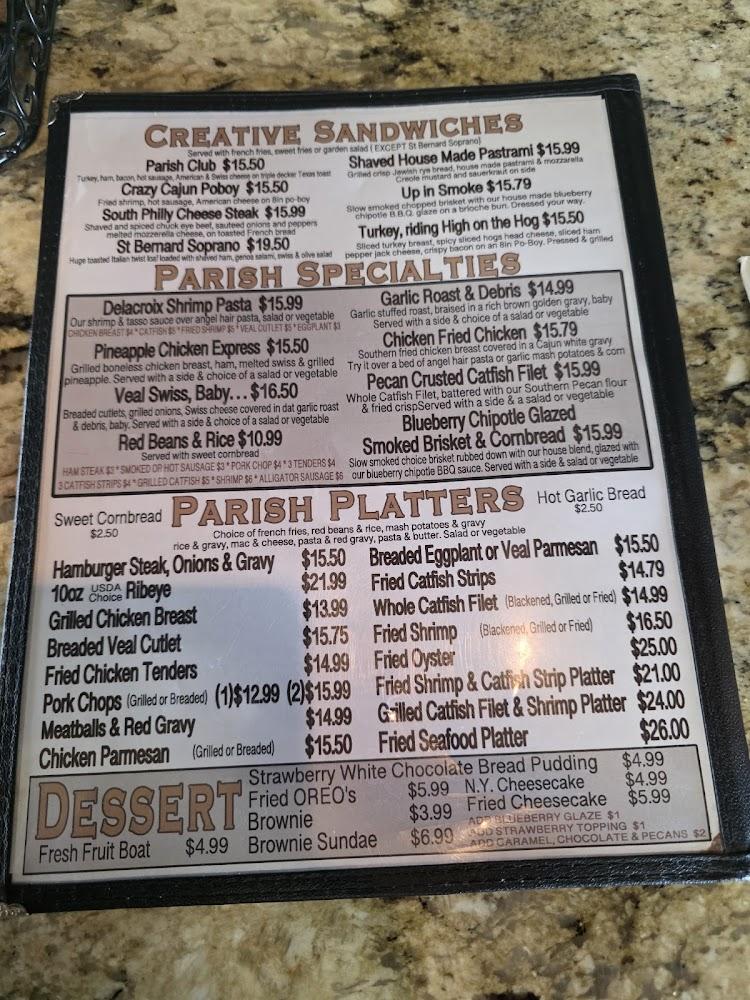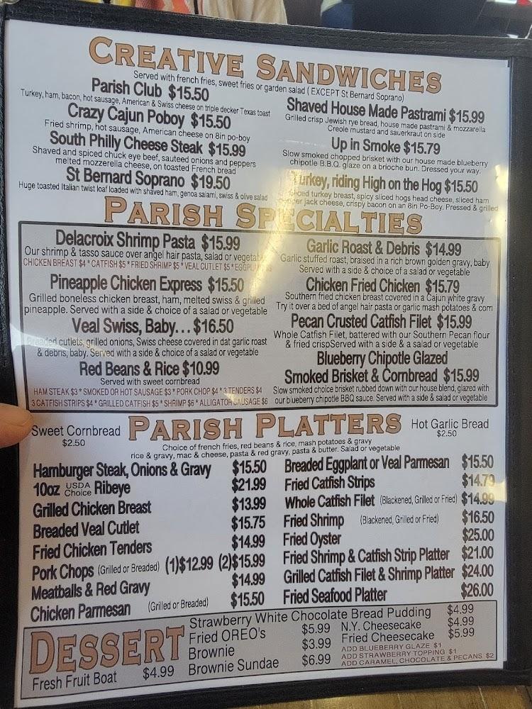 Welcome to Parish Diner, your go-to spot in Chalmette, LA, for hearty Southern cuisine and a welcoming atmosphere. Located at 2401 Paris Rd, we offer a diverse menu featuring local specialties, perfect for breakfast, lunch, or dinner. Join us for live music while enjoying our extensive drink selection, including craft beers and delicious cocktails. With a rooftop terrace and accessible facilities, we cater to families, solo diners, and groups alike. Whether you dine in or opt for takeout, our quick service ensures you leave satisfied. Visit us for an unforgettable meal today!