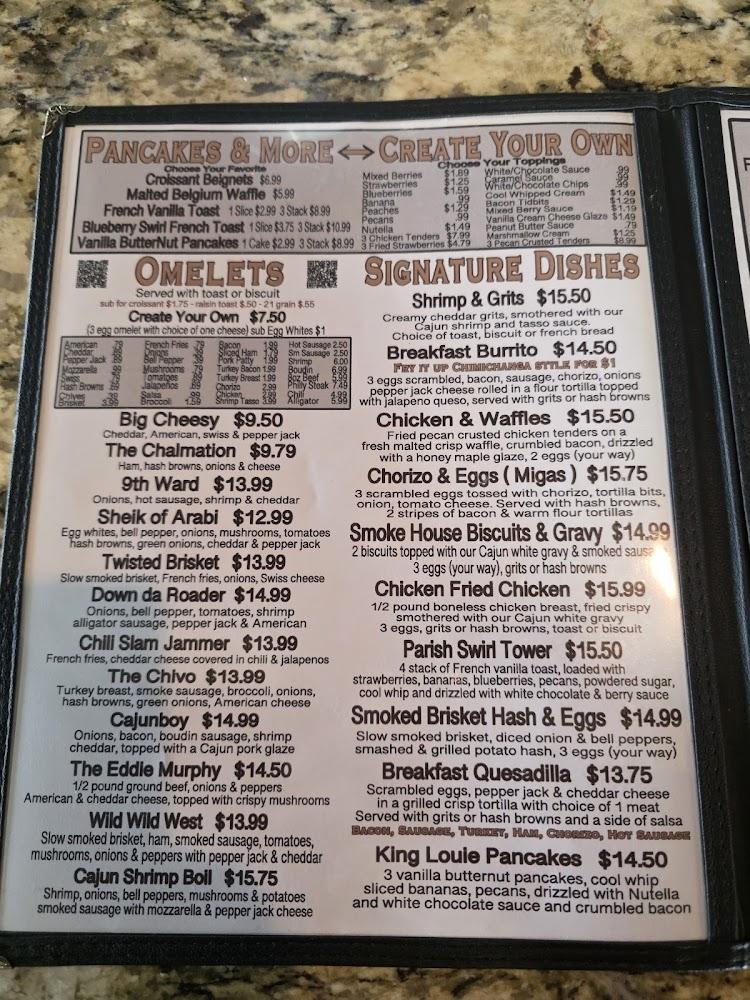 Parish Diner's menu caters to diverse tastes, featuring Southern and Cajun favorites. Breakfast staples include fluffy pancakes and savory eggs. Lunch brings classic po' boys and gumbo, rich with flavor. Dinner offerings showcase hearty platters like hamburger steak and fried catfish. Unique appetizers, like fried dill pickles and gumbo, encourage sharing. Desserts feature treats like brownies and chocolate bread pudding to end meals sweetly. With around 112 dishes, the diner truly satisfies every craving.